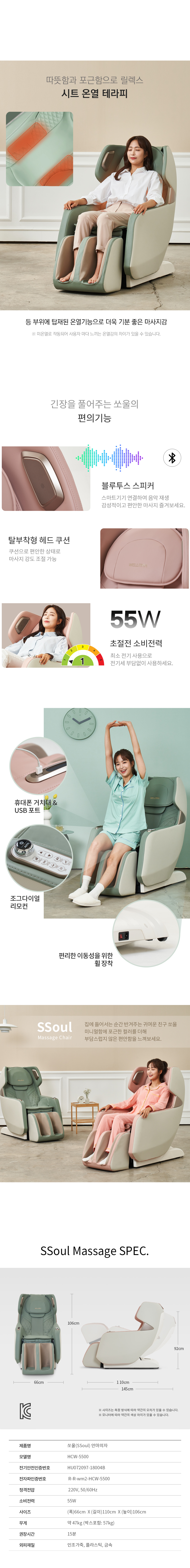 웰모아 미니 컴팩트 쏘울 안마의자 렌탈 HCW-5500_LP 5년약정