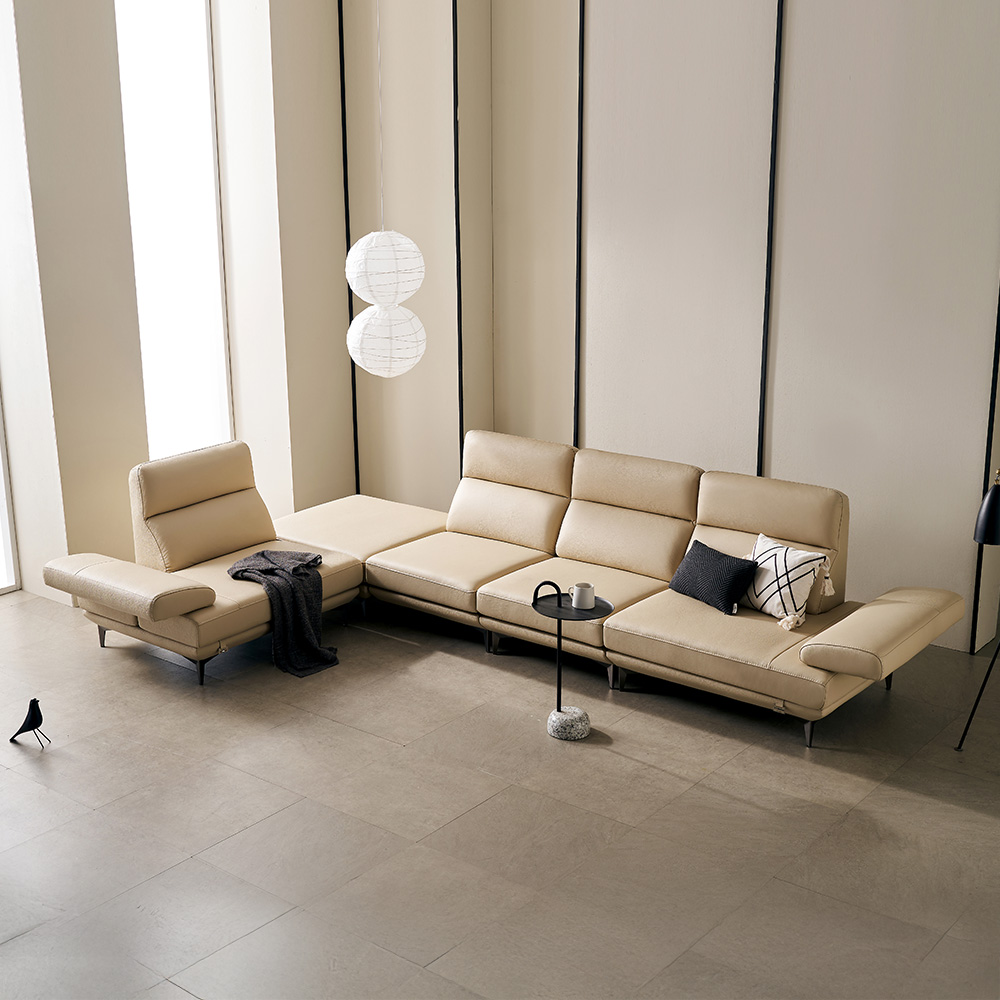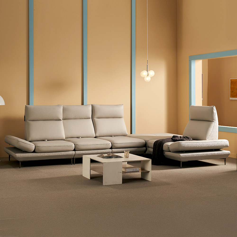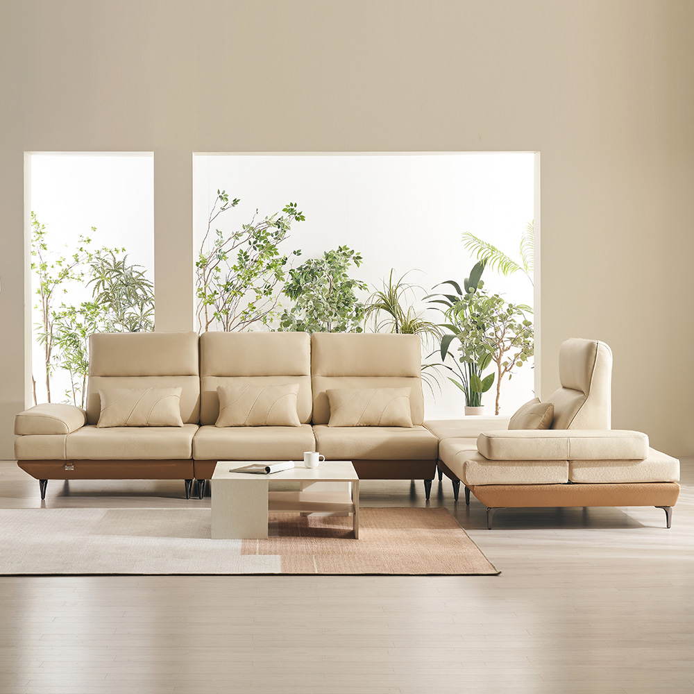 쉐우드 루체 6인용 코너형 이태리 천연통가죽 기능성 스윙 소파